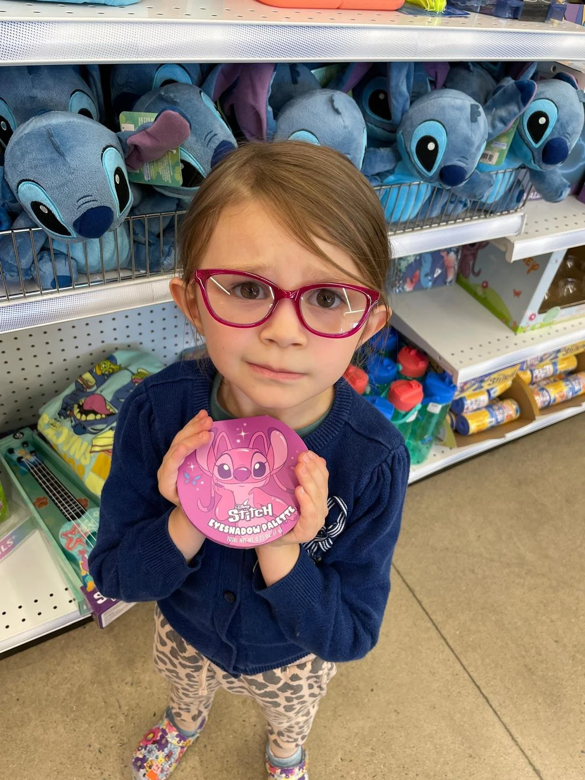Because she’s just spotted a Lilo & Stitch eyeshadow palette.